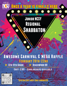 We expect more than 150 6th-8th grade students from around the Region (Cleveland, Columbus, Cincinnati, Detroit, and Pittsburgh.) We will spend an amazing Shabbat together, making new friends, hearing unbelievable speakers, and experiencing a unique program.